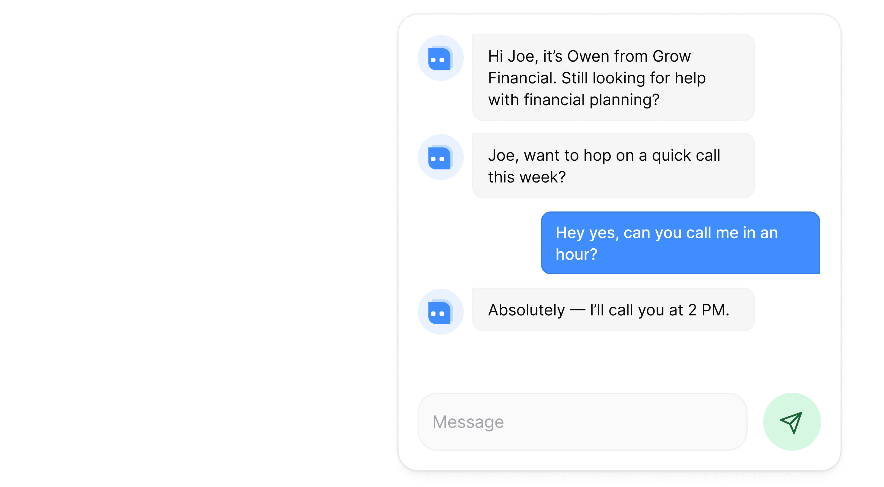 Automate intake, follow-up, and scheduling with AI Agents that work 24/7, reply like a real person, and never drop the ball.
