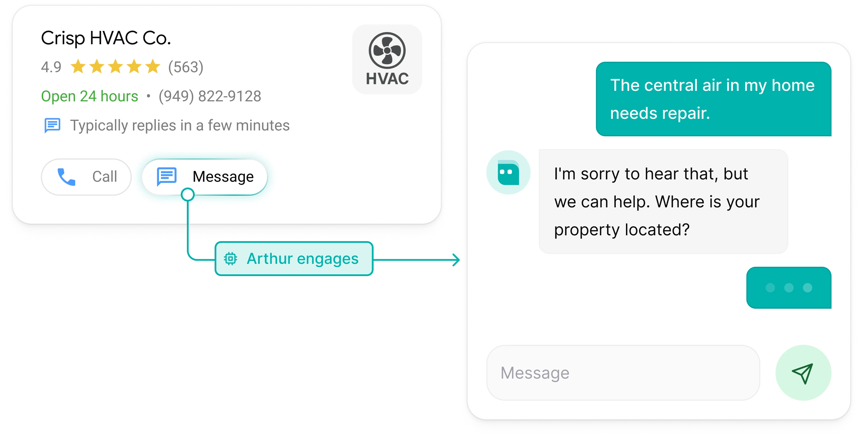 Go beyond answering questions. Guide visitors toward real action: calls, bookings, and quote requests.